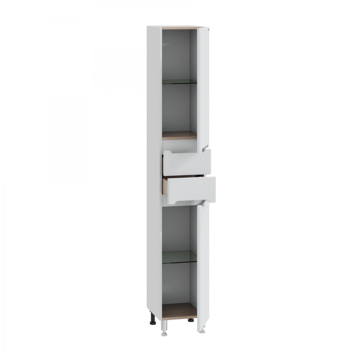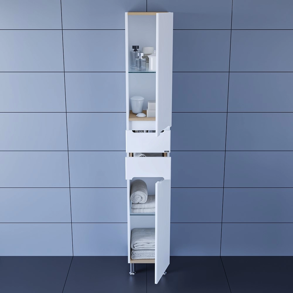 Шкаф-пенал для ванной СаНта Лондон 30 напольный . Фасады шкаф-пенала для ванной комнаты изготовлены из МДФ, корпус колонны из влагостойкого ЛДСП. Фасад покрыт ПВХ пленкой. Шкаф-пенал укомплектован несъемными полочками из стекла. 2 ящика на шариковых направляющих полного выдвижения. Ножки 2 хромированные , 2 пластиковые. Петли у колонны с плавным закрыванием. Шкаф-пенал в ванну вы можете приобрести в дополнение к тумбам из коллекции Санта Лондон.